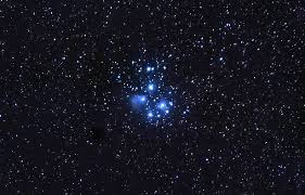 | L'amas des Pléiades (450 années-lumière), est visible à l'oeil nu comme une Grande Ourse en miniature. |